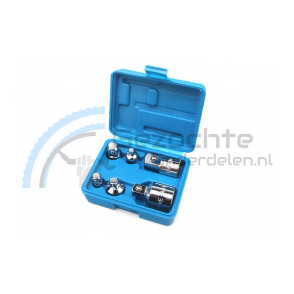 Inhoud: 10dlg bitset diverse soorten. Bithouders 3dlg. Magnetisch. Maten: 50mm, 75mm en 150mm. Adapter set 3dlg. 1/2 inch. 75mm 1/4