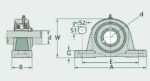 Lagereenheid: gietijzeren blok met lager en twee stelbouten Voor montage op as ? 20