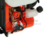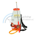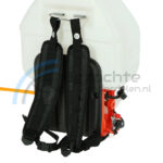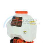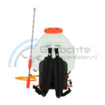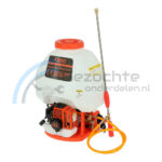 De motor rugspuit/sproeier wordt aangedreven door een 2-takt benzinemotor met een vermogen van 16 cc/0.75 kW/1 pk. De rugspuit kan maximaal 8 meter ver sproeien. Het spuitmiddelreservoir heeft een inhoud van maar liefst 25 liter.
